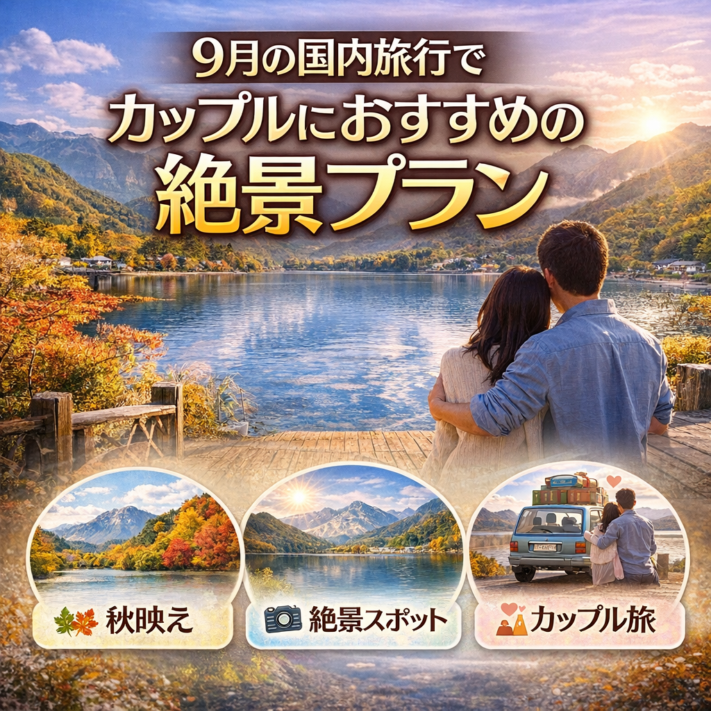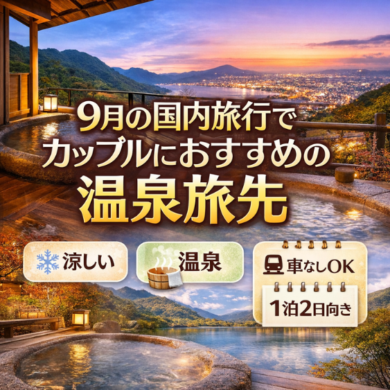 - 9月の国内旅行でカップルにおすすめなのは、温泉旅と絶景旅の両方を楽しみやすい旅先です。